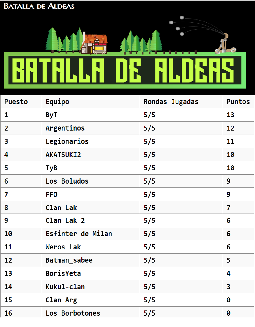 LEGIONARIOS se posiciona en tercer lugar de batalla de las aldeas, siendo el primer torneo competitivo en la plataforma de Voobly superando a otros 13 equipos!